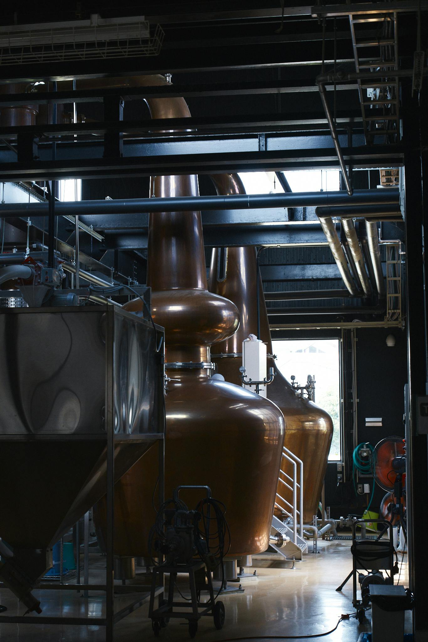 We have a unique method of crushing and saccharifying malt for mash ripening. This has been introduced from the know-how we have acquired from shochu production. Distilling processes ultimately determine the quality of a whisky, and we have designed three original pot stills (pot-copper, straight type, 6t x 1; pot copper still, bulge type, 4t x 1, and copper and steel hybrid pot still x 1). With these we blend whiskies of three different qualities, and thereby reach higher complexity of taste.